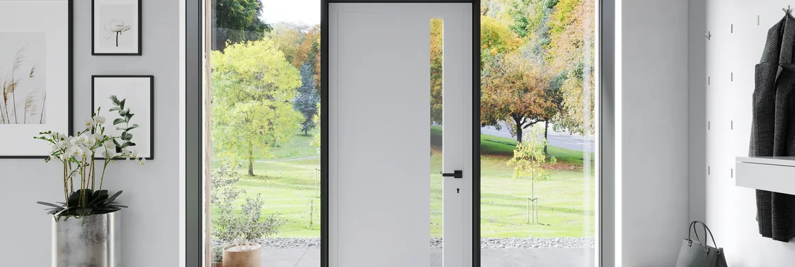 Mit Aluminiumtüren lassen sich einzigartige Designs realisieren. Die Robustheit und Stabilität des Materials muss sich dabei nicht in der Optik widerspiegeln. Eine verspielte Anmutung kommt genauso in Frage wie moderner Minimalismus.